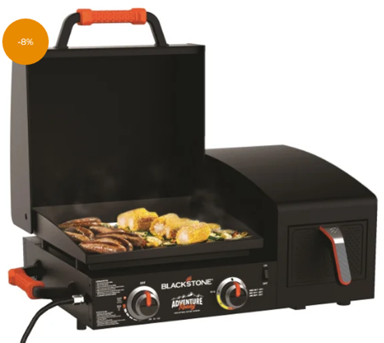 Hvis du altid har ønsket at tage din airfryer med ud i naturen, det kan du nu! Vi præsenterer Blackstone Adventure Ready 17" grillplade med elektrisk luftfrituregryde. Denne 2-i-1 rejse-størrelse grill-luftfrituregryde kombination er perfekt til at ledsage dig til campingpladsen, haven og mere. Du kan gøre det hele: bage, grille, stege, sautere og luftstege.